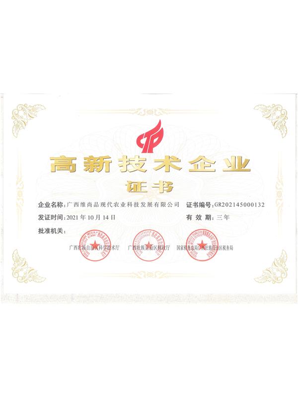 2022年維尚品高新企業(yè)證書